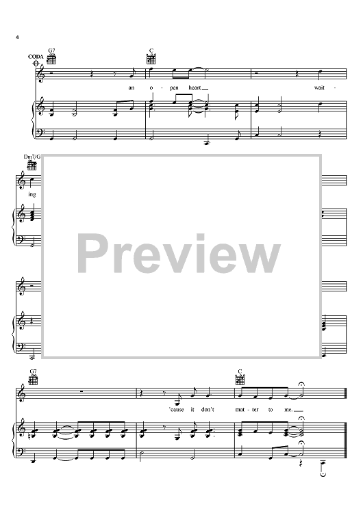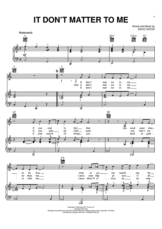 Digital Sheet Music for It Don't Matter To Me by Bread, David Gates scored for Piano/Vocal/Chords; id:368719