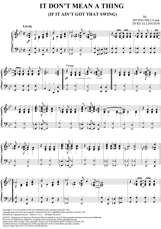 "It Don't Mean a Thing (If It Ain't Got That Swing)" Sheet Music by Duke Ellington