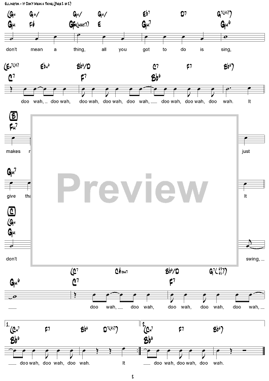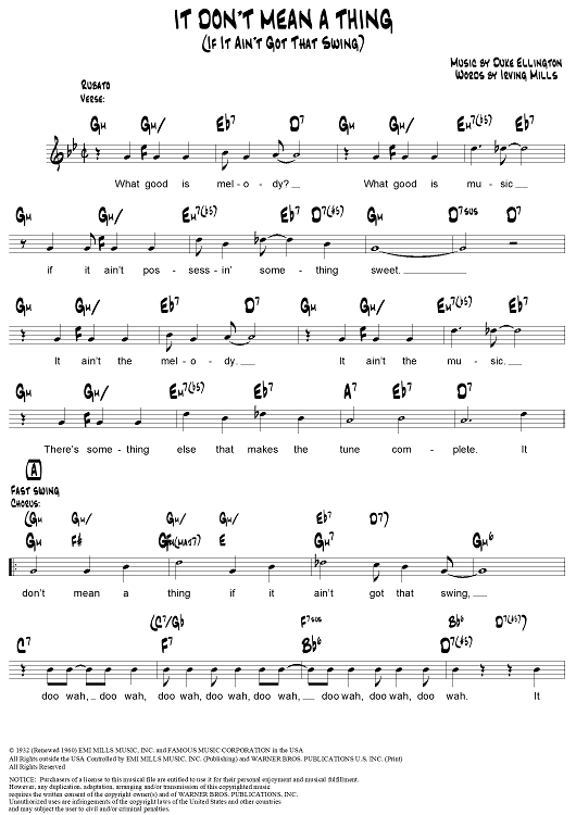 Digital Sheet Music for It Don't Mean a Thing (If It Ain't Got That Swing) by Duke Ellington, Irving Mills scored for Lead Sheet; id:312148