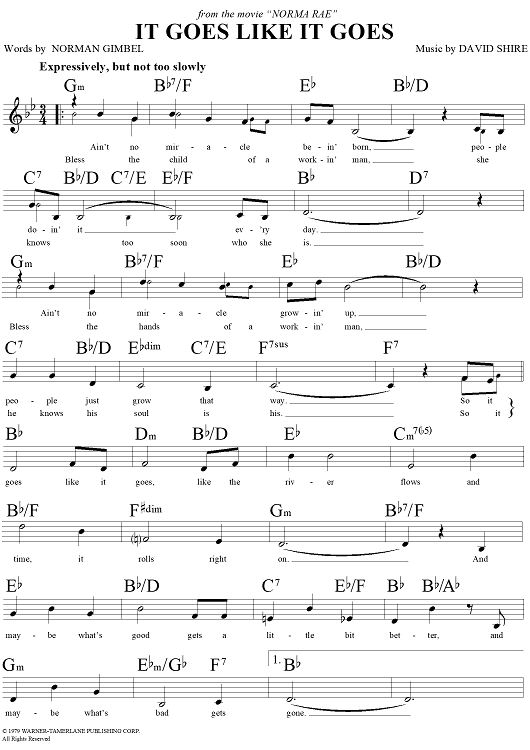 Digital Sheet Music for It Goes Like It Goes by Norman Gimbel, David Shire scored for Lead Sheet; id:124341