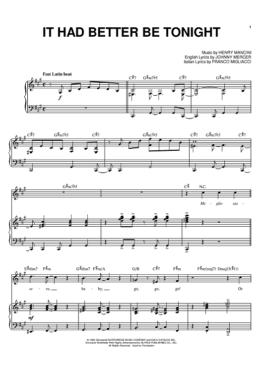 "It Had Better Be Tonight" Sheet Music by Henry Mancini