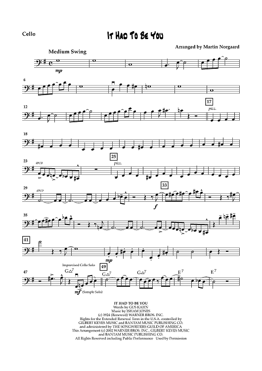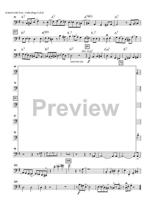 "It Had To Be You - Cello" Sheet Music by Isham Jones