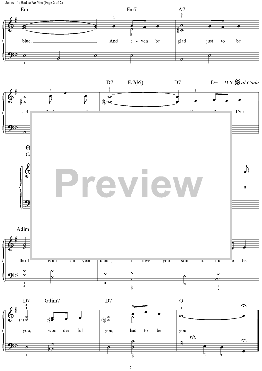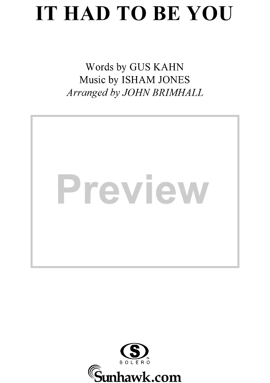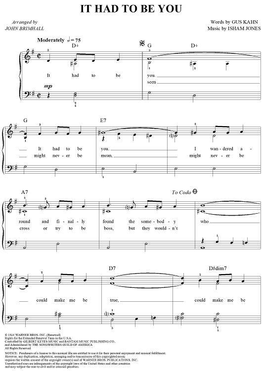 Digital Sheet Music for It Had to Be You by Gus Kahn, Isham Jones, John Brimhall scored for Easy Piano/Vocal; id:266729