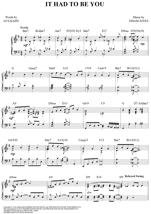 Digital Sheet Music for It Had To Be You by Gus Kahn, Isham Jones scored for Piano Solo; id:465605