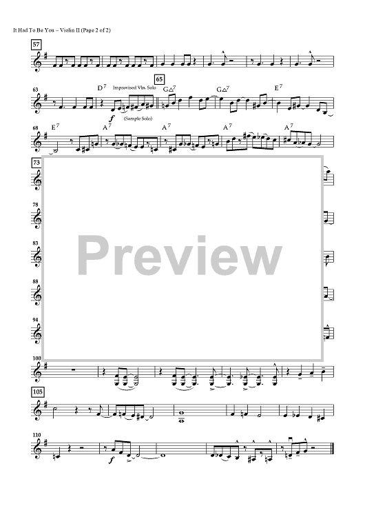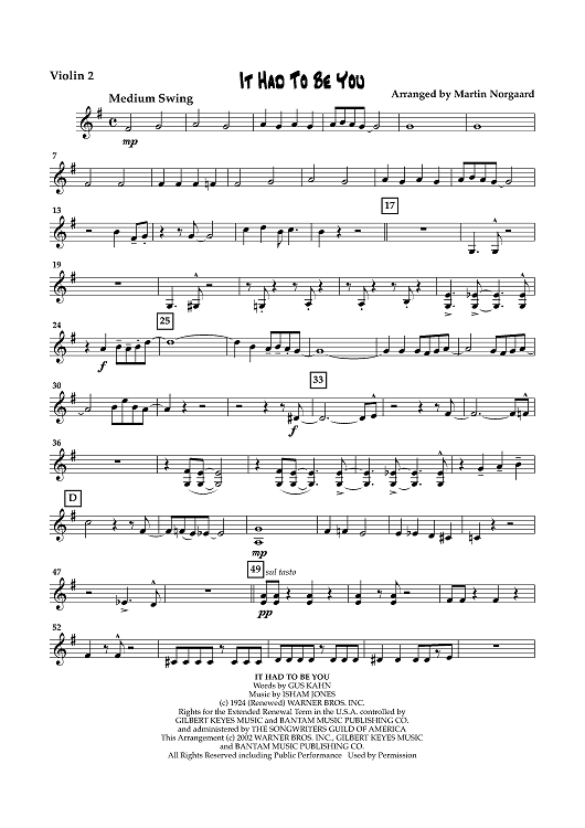 "It Had To Be You - Violin 2" Sheet Music by Isham Jones
