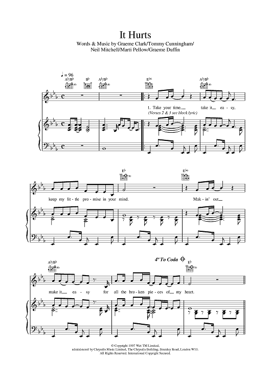 Digital Sheet Music for It Hurts by Wet Wet Wet scored for Piano/Vocal/Chords; id:376459