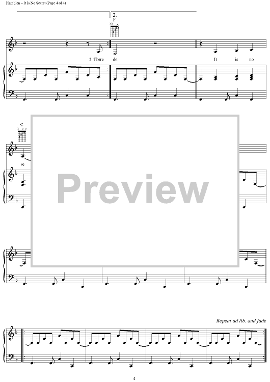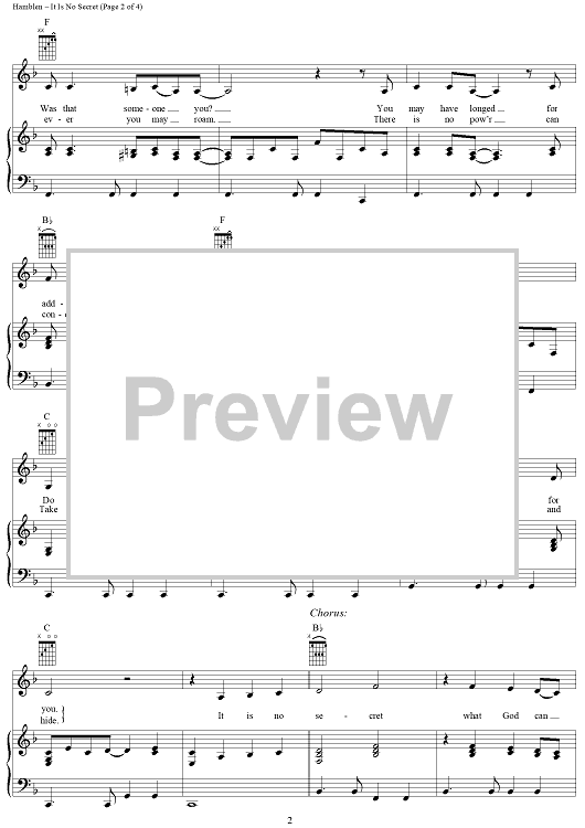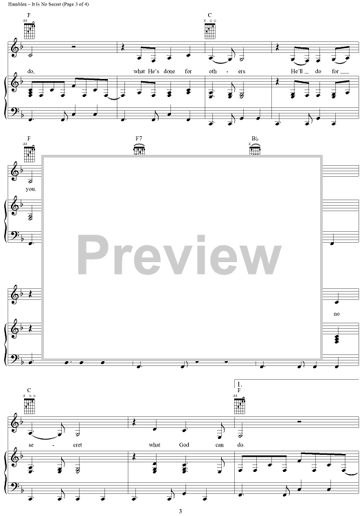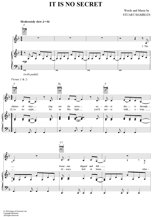 Digital Sheet Music for It Is No Secret by Anne Murray, Stuart Hamblen scored for Piano/Vocal/Chords; id:289010