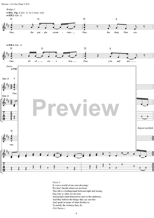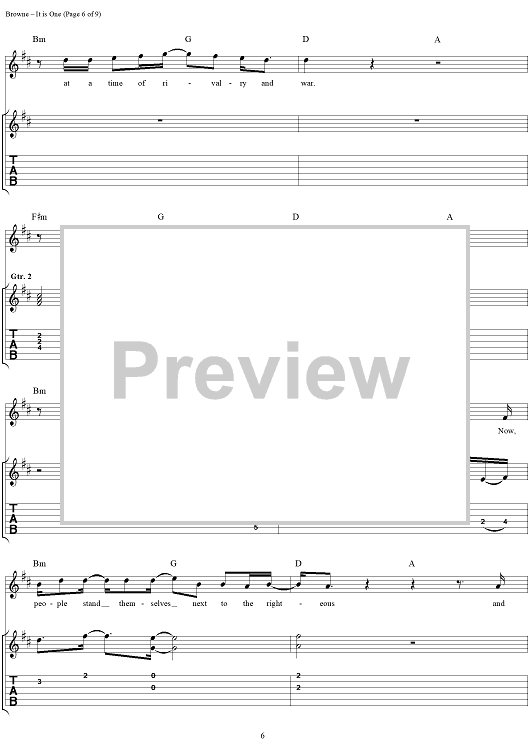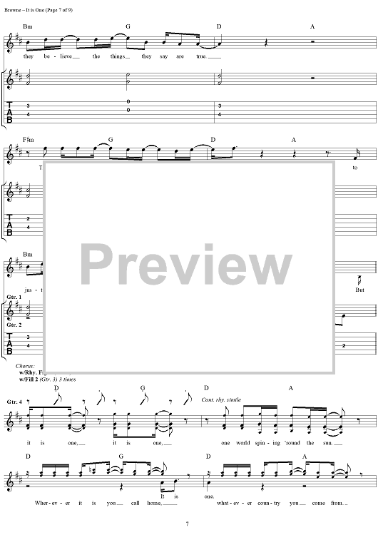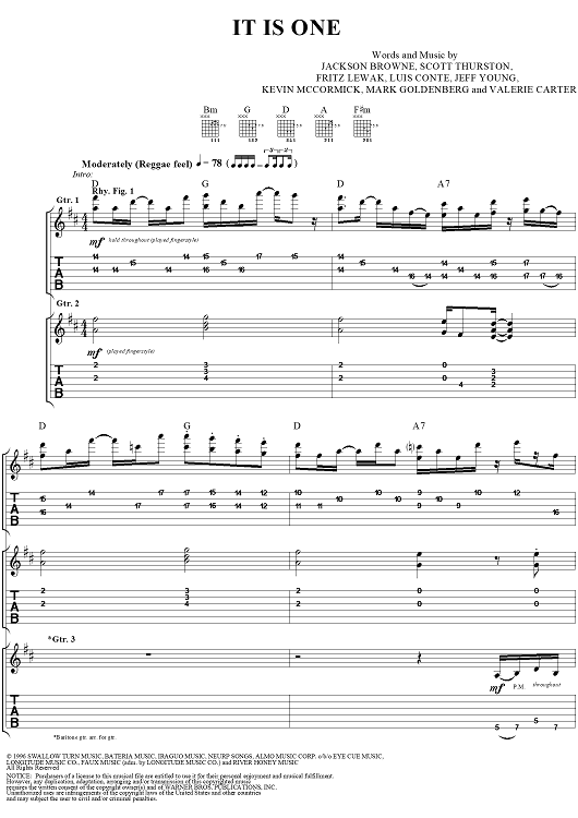 Digital Sheet Music for It Is One by Jackson Browne, Kevin McCormick, Mauricio "Fritz" Lewak, Scott Thurston, Luis Conte, Jeff Young, Mark Goldenberg, Valerie Carter scored for Guitar Tab/Vocal; id:116459