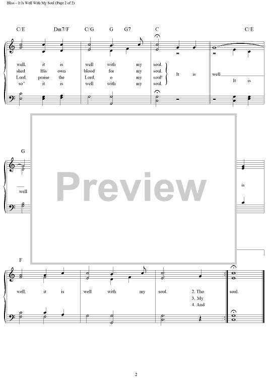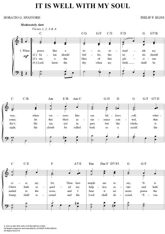 Digital Sheet Music for It Is Well With My Soul by Philip P. Bliss, Horatio G. Spafford scored for Piano/Vocal/Chords; id:275089