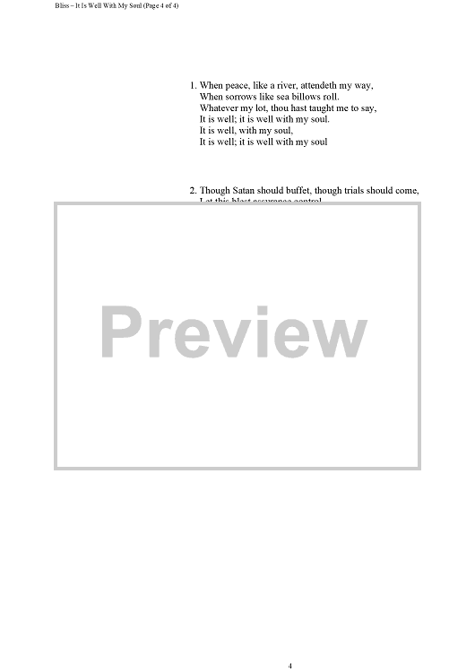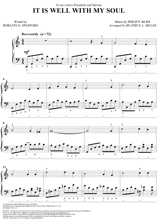 Digital Sheet Music for It Is Well With My Soul by Philip P. Bliss, Beatrice A. Miller, Horatio G. Spafford scored for Easy Piano; id:294632