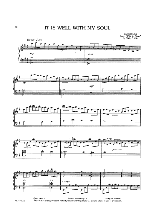 Digital Sheet Music for It Is Well With My Soul by Philip P. Bliss, John Innes scored for Piano Solo; id:433620