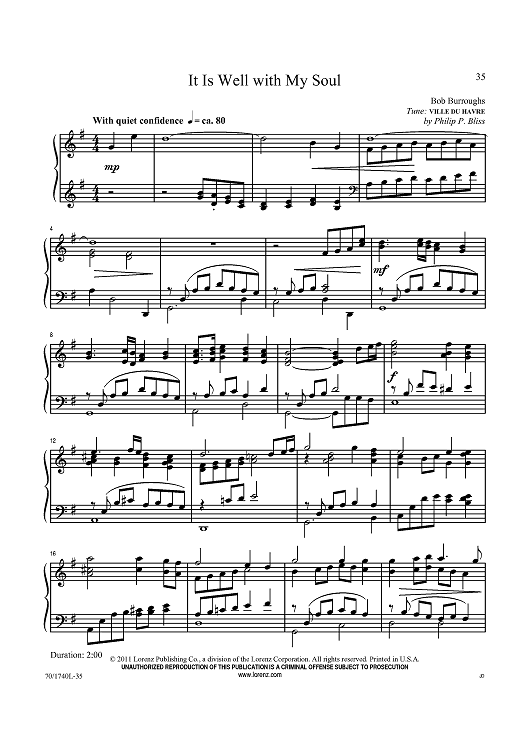 Digital Sheet Music for It Is Well With My Soul by Philip P. Bliss, Bob Burroughs scored for Piano Solo; id:433987