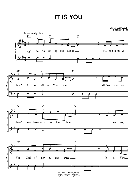 Digital Sheet Music for It Is You by Peter Furler, Newsboys scored for Easy Piano; id:389066
