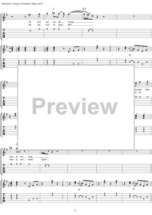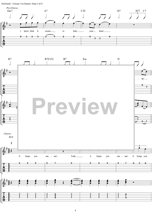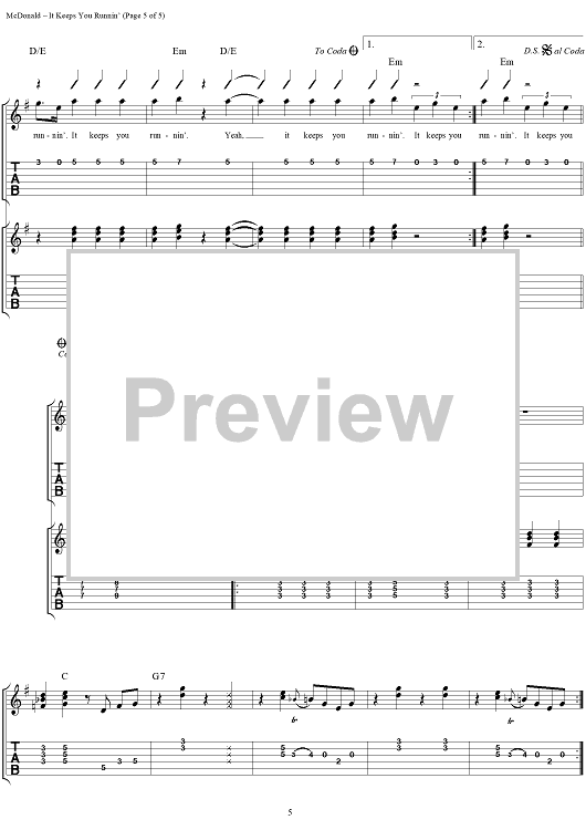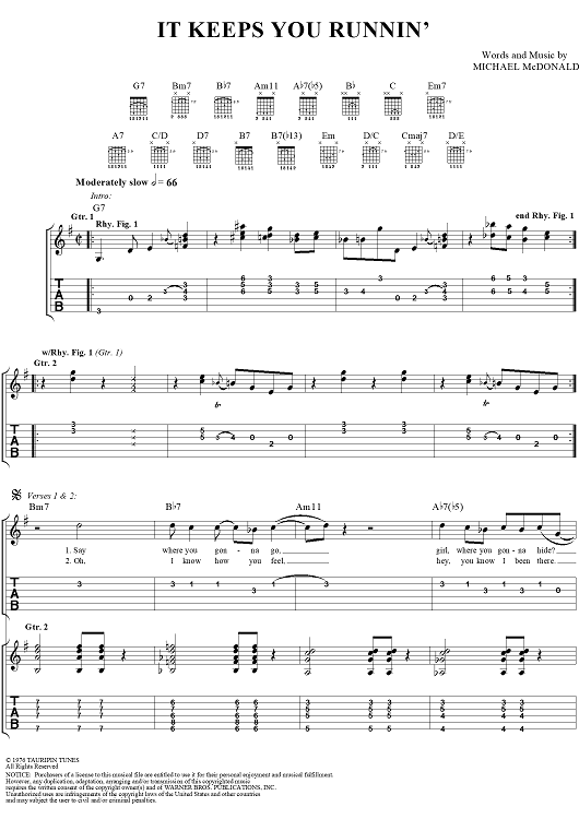 "It Keeps You Runnin'" Sheet Music by The Doobie Brothers