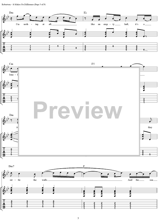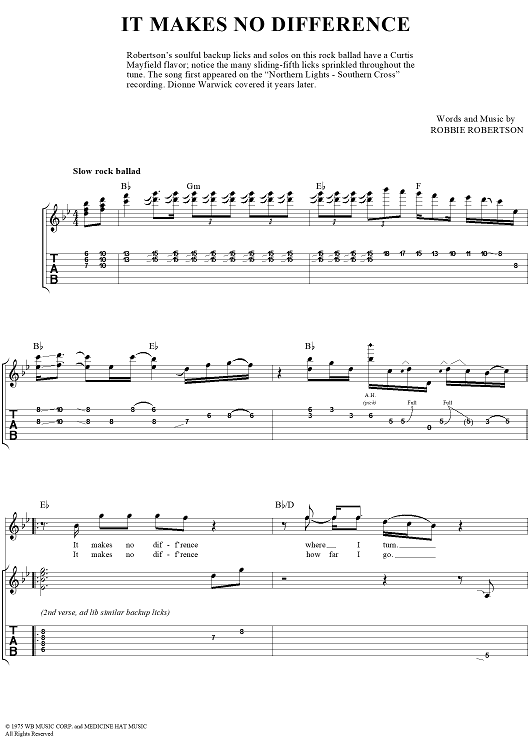 "It Makes No Difference" Sheet Music by Robbie Robertson