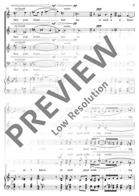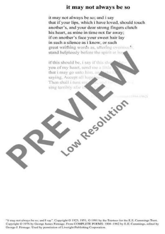 E. E. Cummings' poem about a bygone love, about despair, indifference to acceptance is set for mixed choir. Brown's music relives the story with hovering and grating sounds, demanding courage to use extremely different dynamics.
