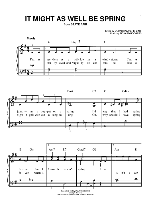 Digital Sheet Music for It Might As Well Be Spring by Richard Rodgers, Oscar Hammerstein II scored for Easy Piano; id:390468