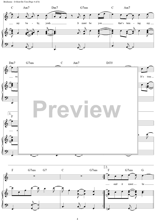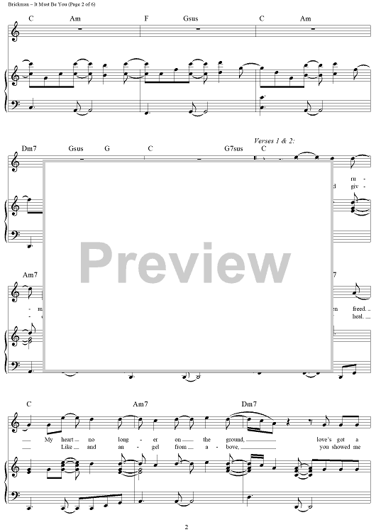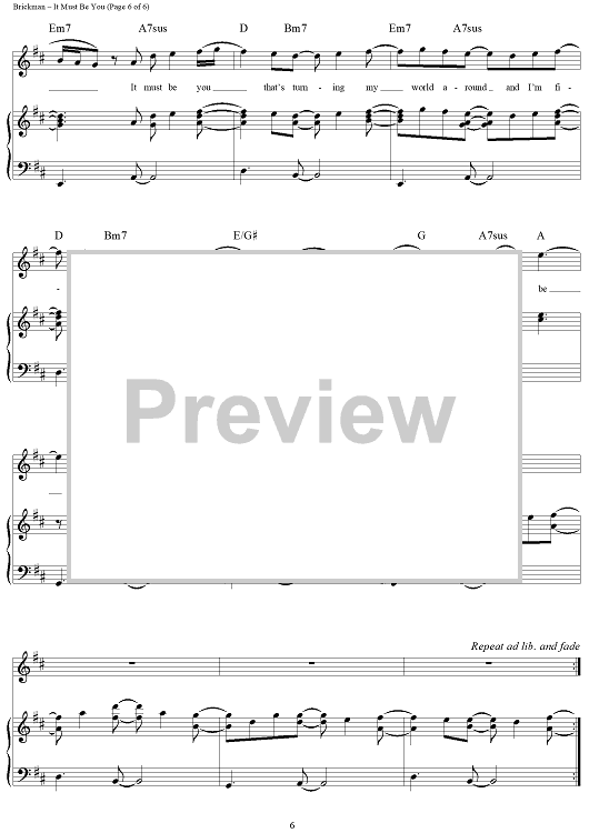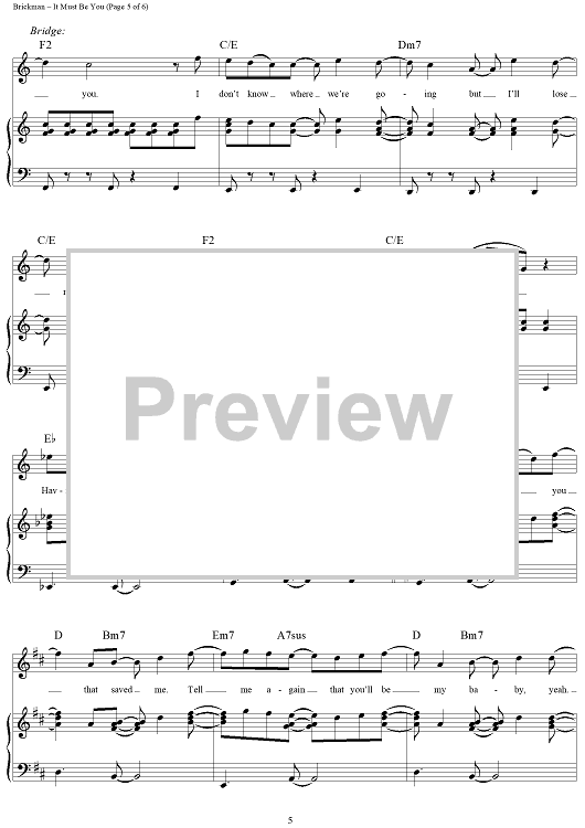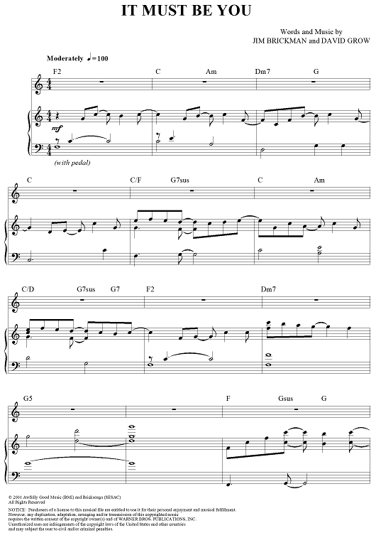 Digital Sheet Music for It Must Be You by Jim Brickman, David Grow scored for Piano/Vocal/Chords; id:284511