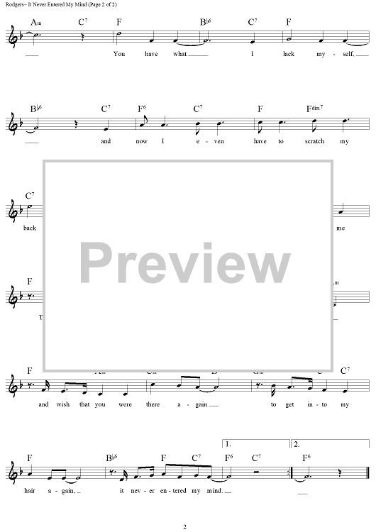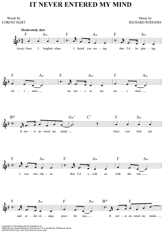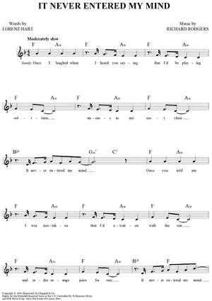 Digital Sheet Music for It Never Entered My Mind by Richard Rodgers, Lorenz Hart scored for Lead Sheet; id:446564