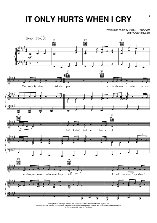 Digital Sheet Music for It Only Hurts When I Cry by Roger Miller, Dwight Yoakam scored for Piano/Vocal/Chords; id:402405