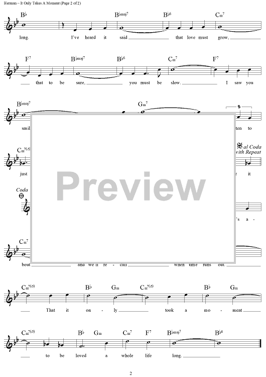 Digital Sheet Music for It Only Takes a Moment by Jerry Herman scored for Lead Sheet; id:446614
