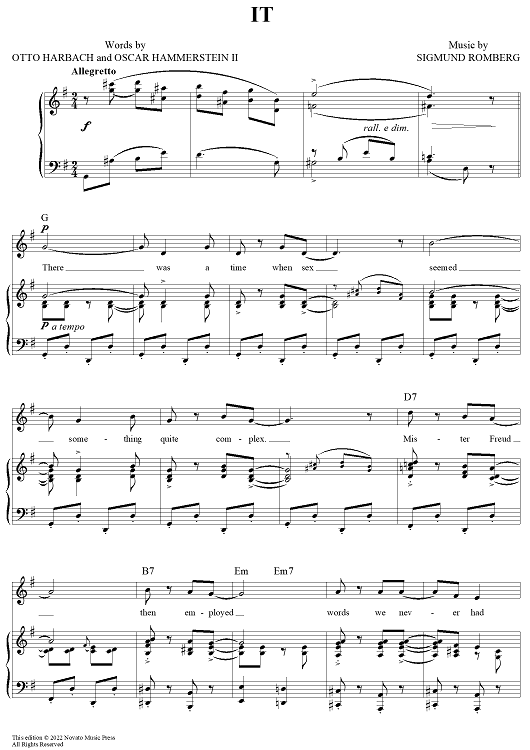 Digital Sheet Music for It by Sigmund Romberg, Oscar Hammerstein II, Otto Harbach scored for Piano/Vocal/Chords; id:355958