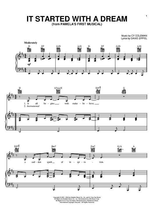 Digital Sheet Music for It Started With A Dream by Cy Coleman, David Zippel scored for Piano/Vocal/Chords; id:375022