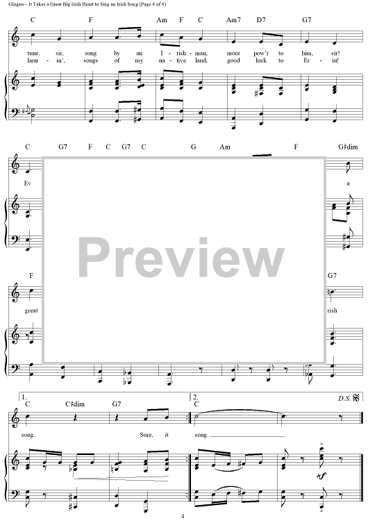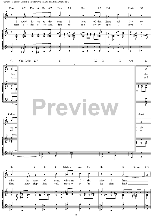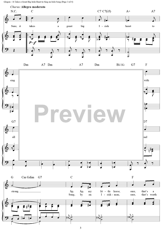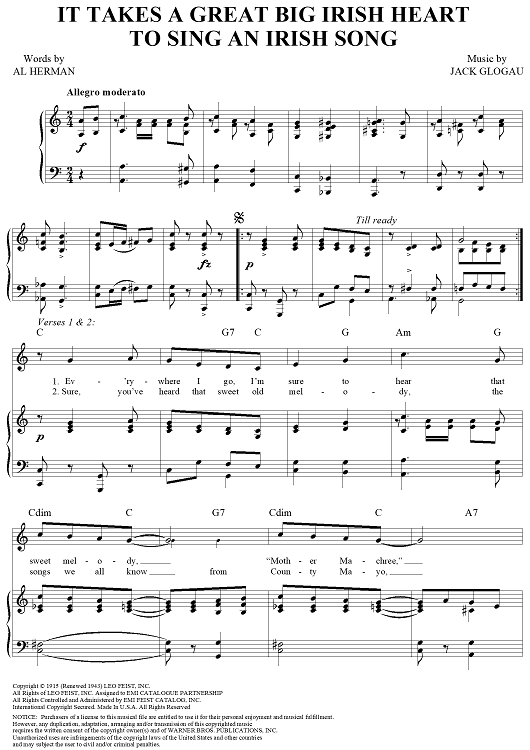 Digital Sheet Music for It Takes a Great Big Irish Heart to Sing an Irish Song by Jack Glogau, Al Herman scored for Piano/Vocal/Chords; id:268383