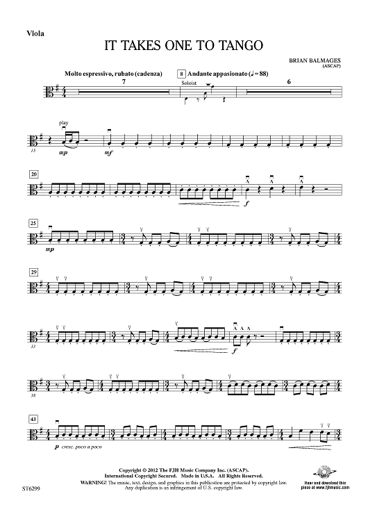 Digital Sheet Music for It Takes One to Tango - Viola by Brian Balmages scored for Solo Cello or Euphonium and Orchestra; id:432220