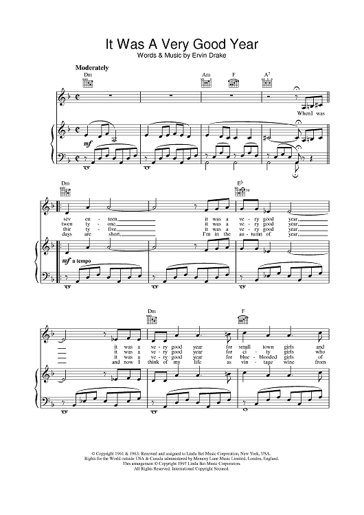 Digital Sheet Music for It Was A Very Good Year by Frank Sinatra scored for Piano/Vocal/Chords; id:378949
