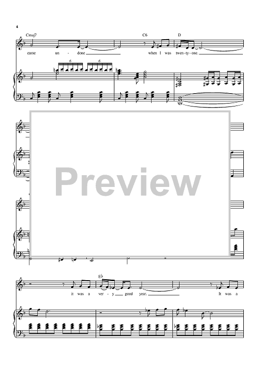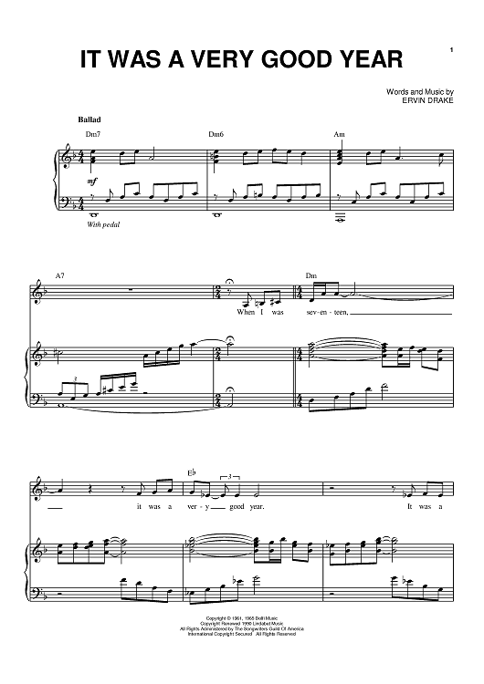 Digital Sheet Music for It Was A Very Good Year by Frank Sinatra, Ervin Drake scored for Piano/Vocal/Chords; id:390415