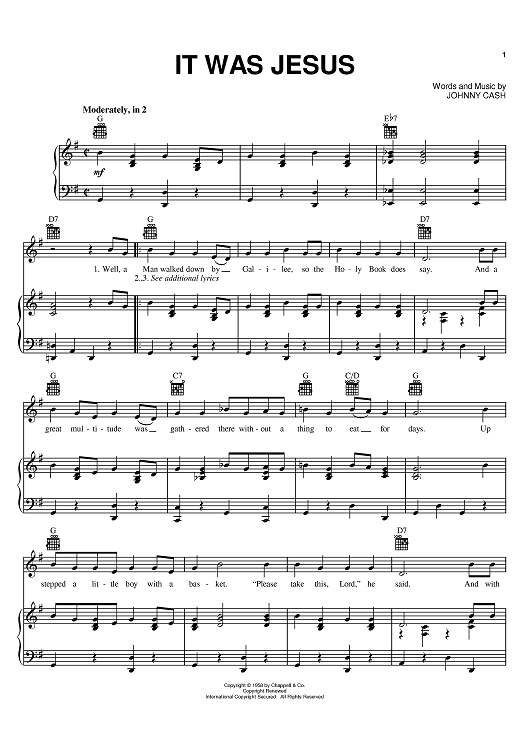 Digital Sheet Music for It Was Jesus by Johnny Cash scored for Piano/Vocal/Chords; id:370772