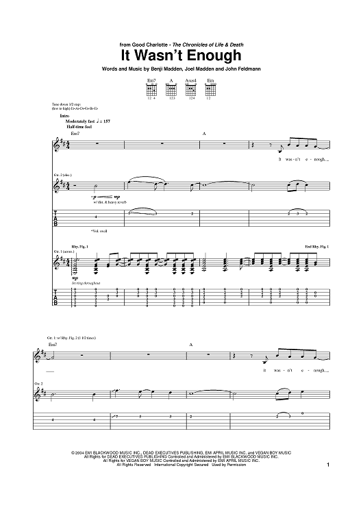 Digital Sheet Music for It Wasn't Enough by Benji Madden, Joel Madden, Good Charlotte, John Feldmann scored for Guitar Tab; id:383298