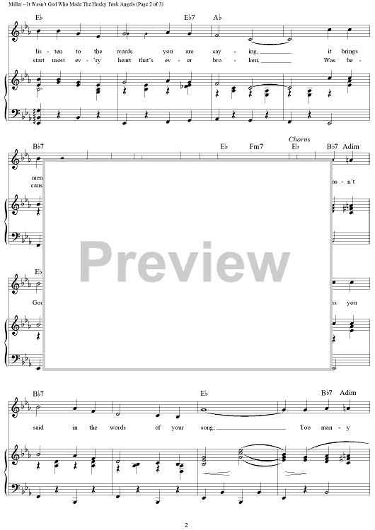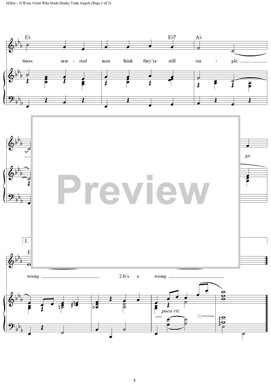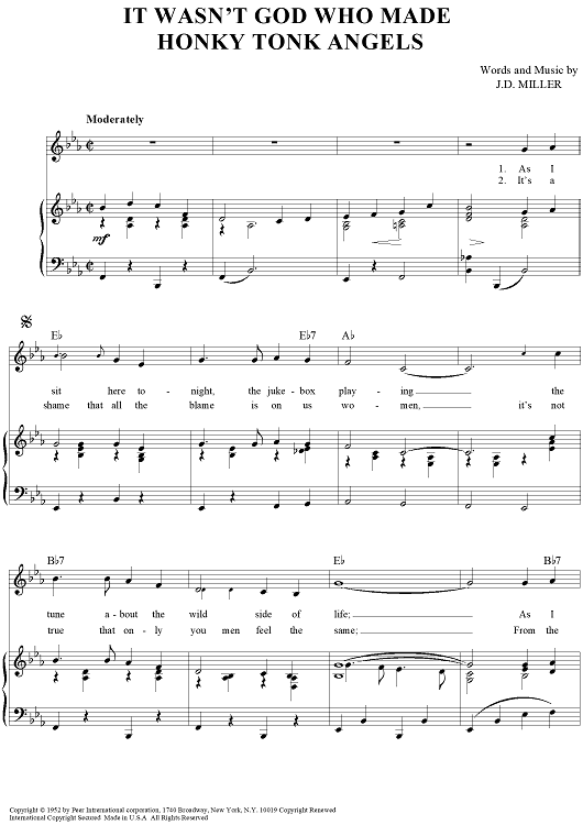 Digital Sheet Music for It Wasn't God Who Made Honky Tonk Angels by Patty Loveless, J. D. Miller, Kitty Wells, Dolly Parton scored for Piano/Vocal/Chords; id:361262