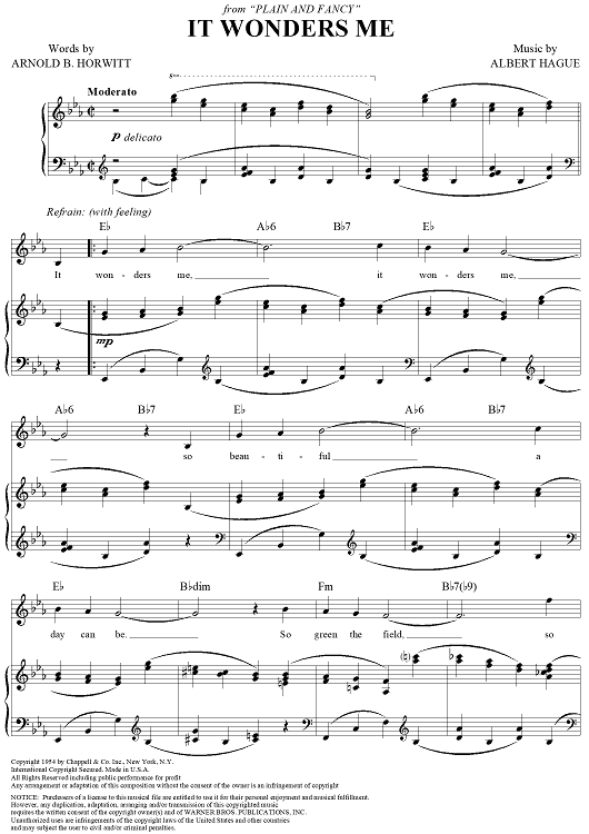 Digital Sheet Music for It Wonders Me by Albert Hague, Arnold B. Horwitt scored for Piano/Vocal/Chords; id:356041