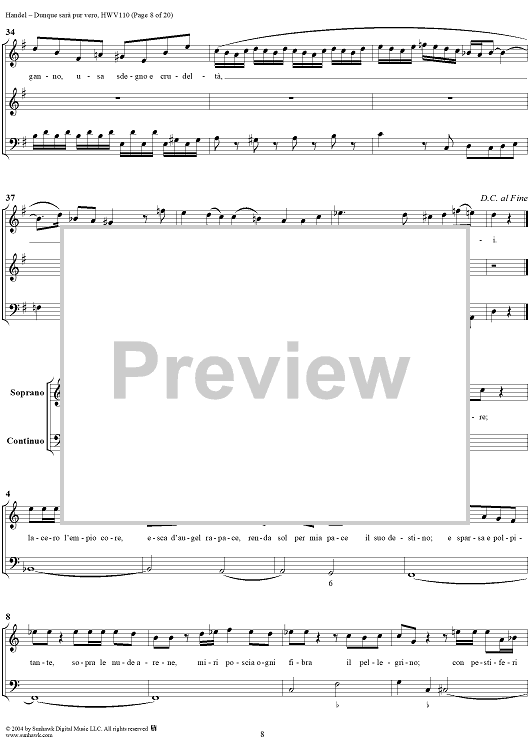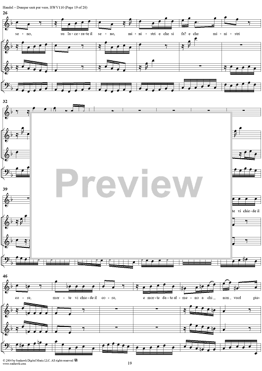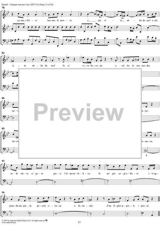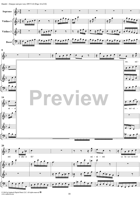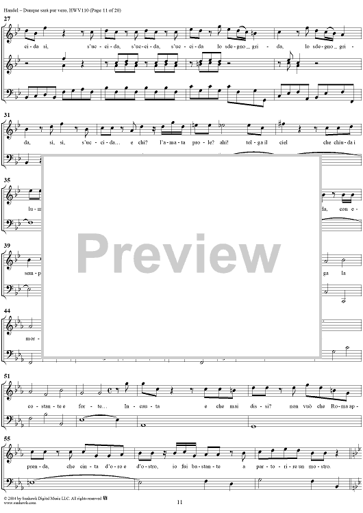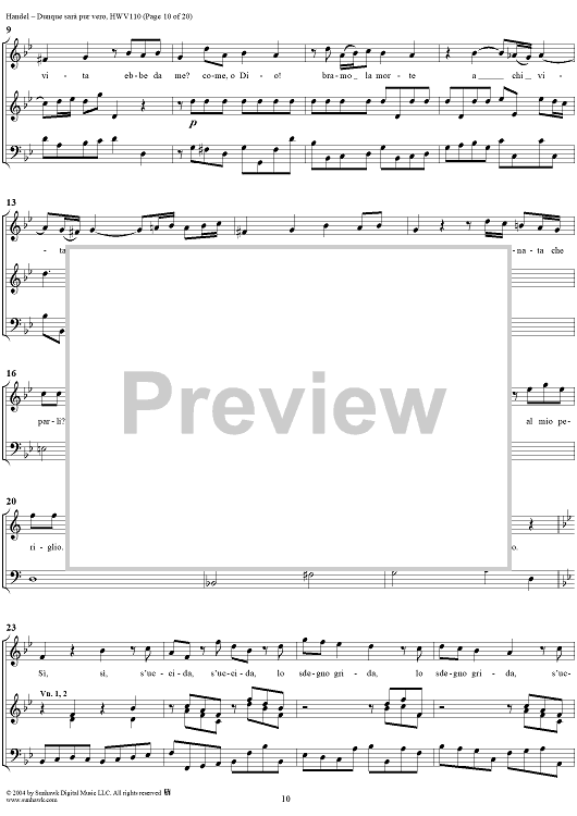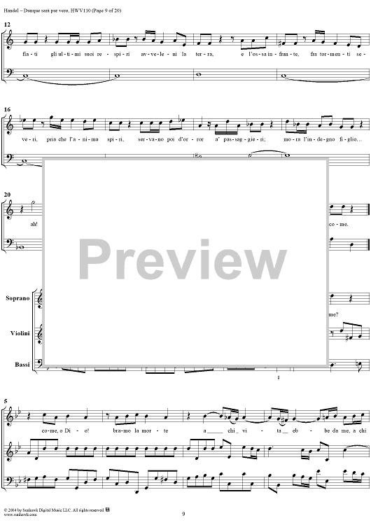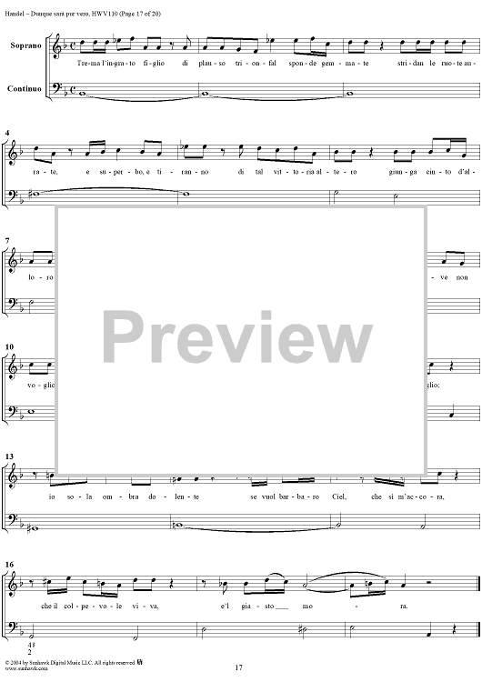 Digital Sheet Music for Italian Cantata No. 14: "Dunque sarà pur vero" (Agrippina condotta a morire), HWV110 by George Frideric Handel scored for Soprano, 2 Violins and Continuo; id:306763