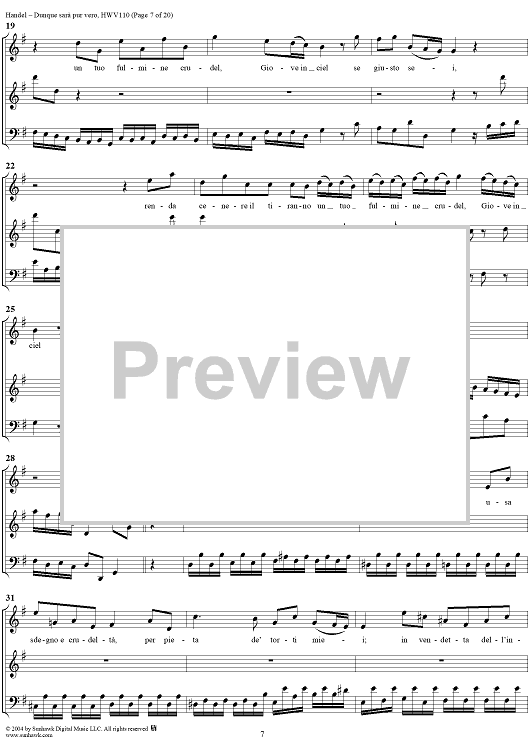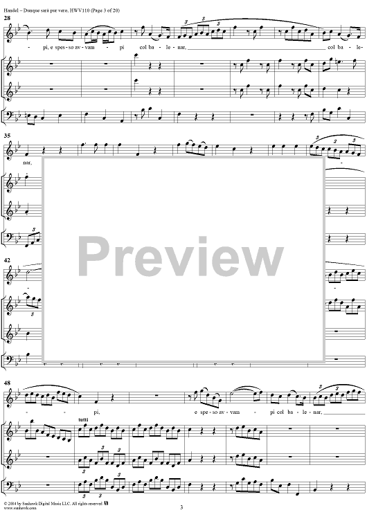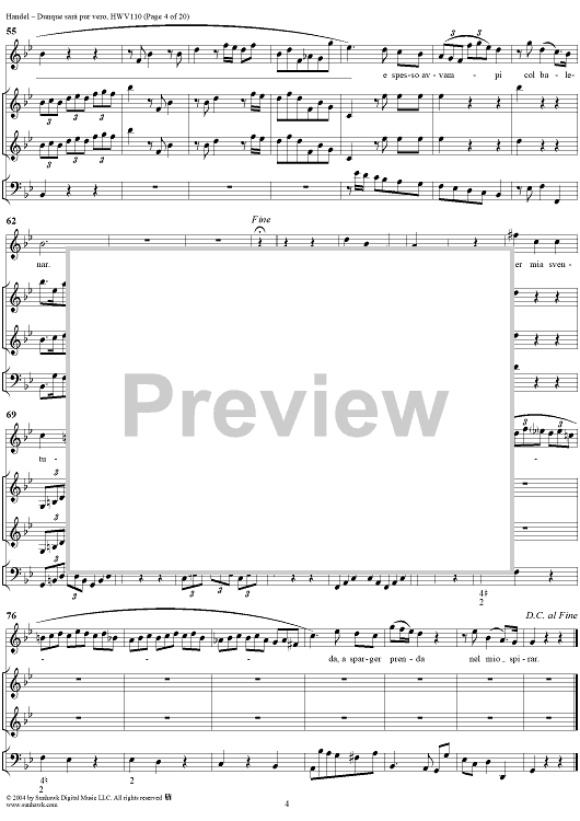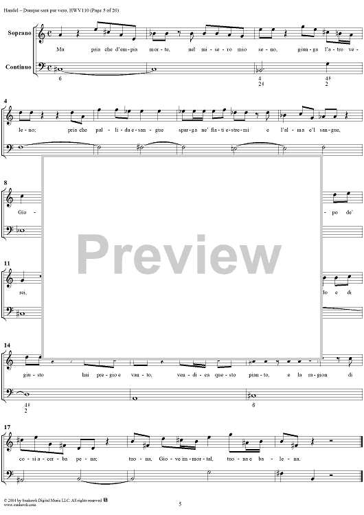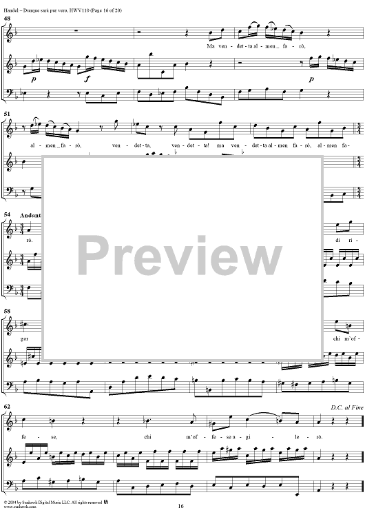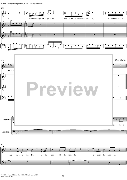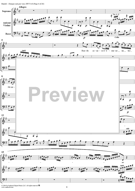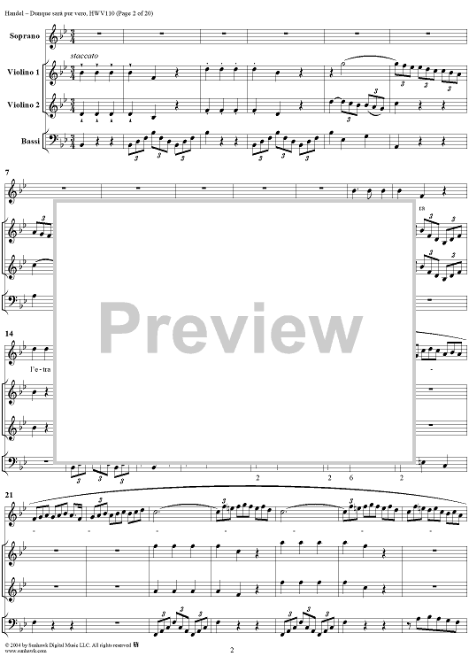 Digital Sheet Music for Italian Cantata No. 14: "Dunque sarà pur vero" (Agrippina condotta a morire), HWV110 by George Frideric Handel scored for Soprano, 2 Violins and Continuo; id:306763