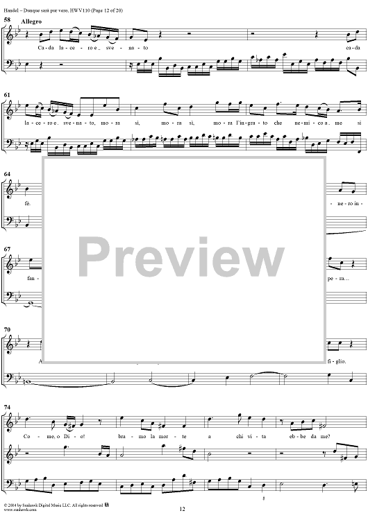 "Italian Cantata No. 14: "Dunque sarà pur vero" (Agrippina condotta a morire), HWV110" Sheet Music by George Frideric Handel