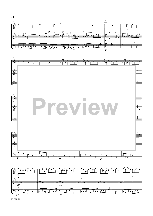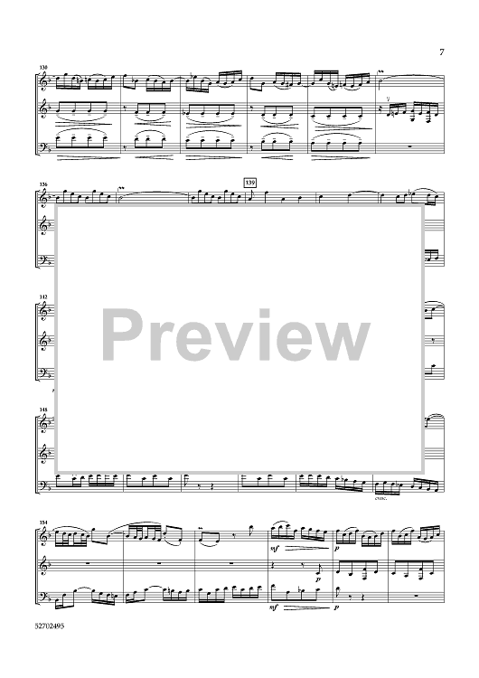 A stunning arrangement of the three-movement harpsichord masterwork, this advanced intermediate arrangement, in the original key of F, presents challenging passage work for all in the first and third movements. The rhythmically complex second movement creates additional interest and opportunities for musical development.