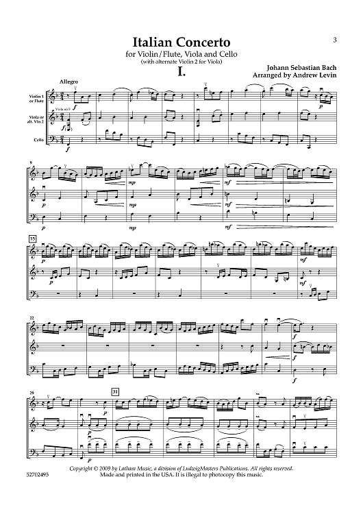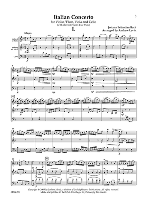 "Italian Concerto for Violin/Flute, Viola and Cello - Score" Sheet Music by Johann Sebastian Bach