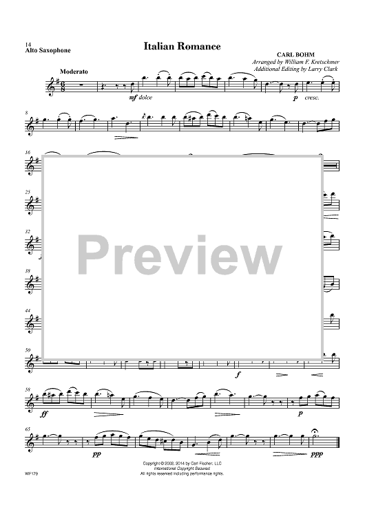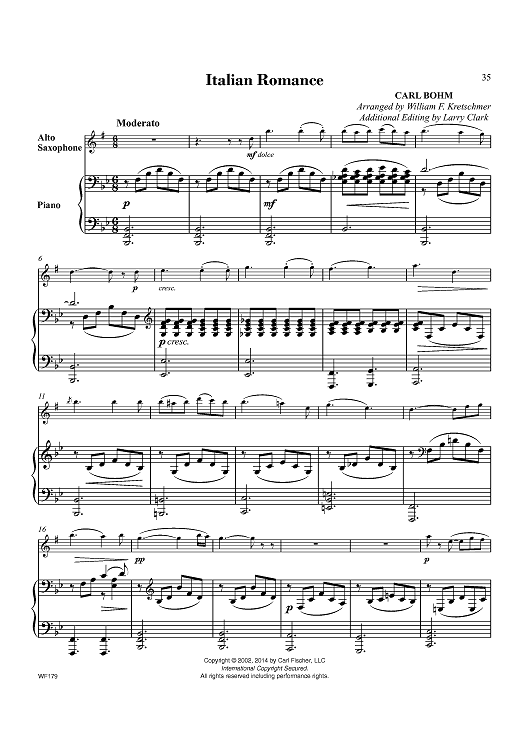 Digital Sheet Music for Italian Romance by Carl Bohm, William F. Kretschmer scored for Eb Alto Sax/Piano; id:451690
