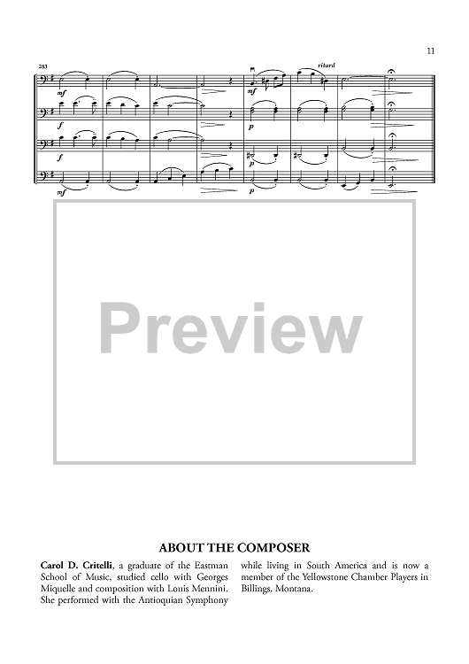 Digital Sheet Music for Italian Song for Cello Quartet - Score by , Carol D. Critelli scored for Cello Quartet; id:464555