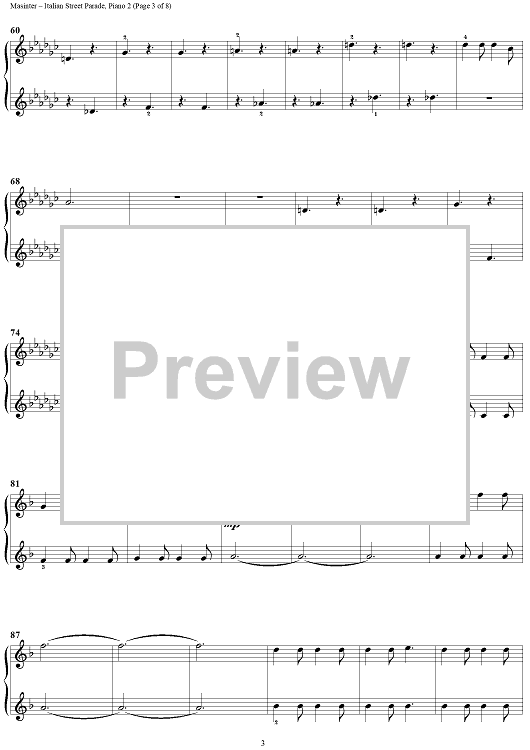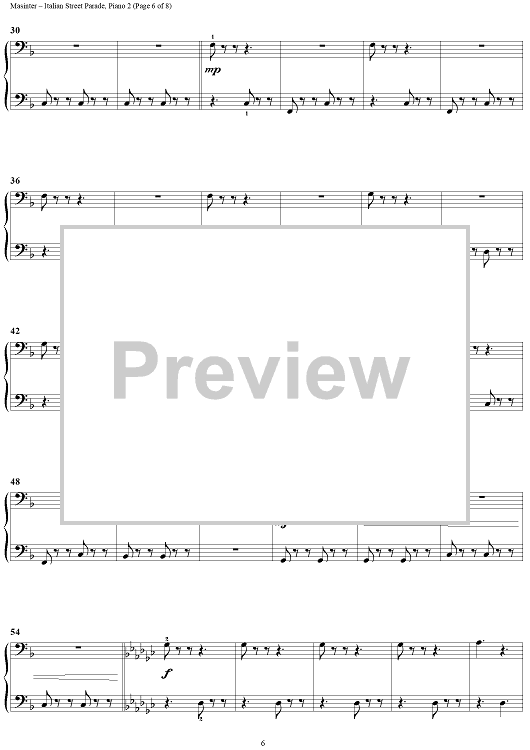 "Italian Street Parade - Piano 2" Sheet Music by Tom Masinter