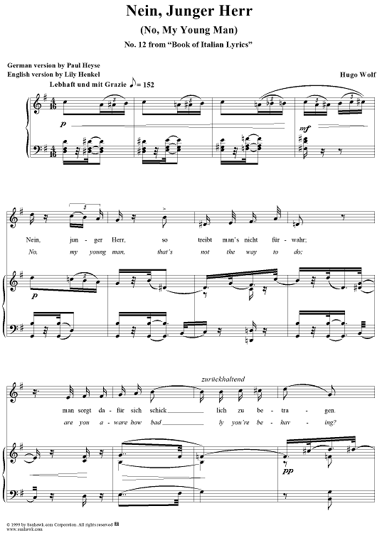 "Italienisches Liederbuch, nach Paul Heyse, Part 1, No. 12 - Nein, junger Herr, so treibt man's nicht, fürwahr" Sheet Music by Hugo Wolf