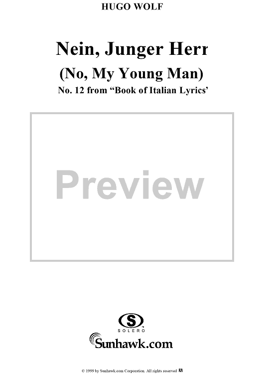 Digital Sheet Music for Italienisches Liederbuch, nach Paul Heyse, Part 1, No. 12 - Nein, junger Herr, so treibt man's nicht, fürwahr by Hugo Wolf, Paul Heyse scored for Voice/Piano; id:263454