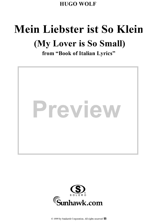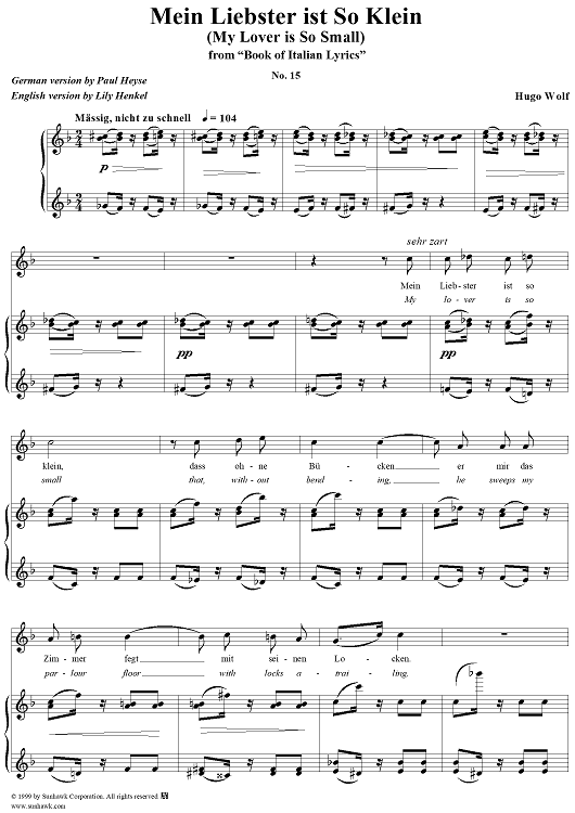 "Italienisches Liederbuch, nach Paul Heyse, Part 1, No. 15 - Mein Liebster ist so klein" Sheet Music by Hugo Wolf