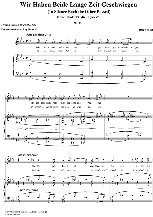 Digital Sheet Music for Italienisches Liederbuch, nach Paul Heyse, Part 1, No. 19 - Wir haben beide lange Zeit geschwiegen by Hugo Wolf, Paul Heyse scored for Voice/Piano; id:263236