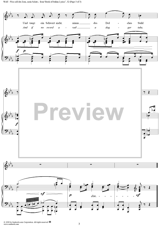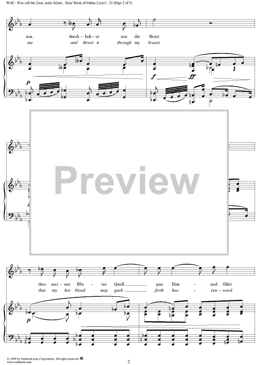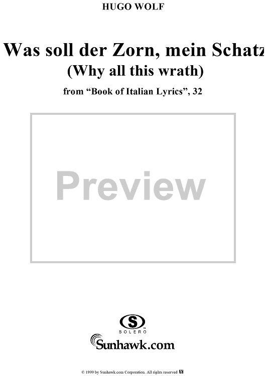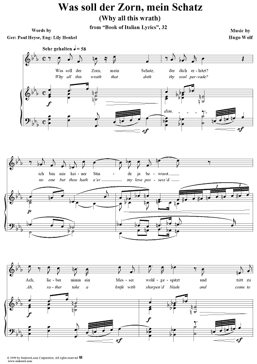Digital Sheet Music for Italienisches Liederbuch, nach Paul Heyse, Part 2, No. 32 - Was soll der Zorn, mein Schatz, der dich erhitzt by Hugo Wolf, Paul Heyse scored for Voice/Piano; id:263149