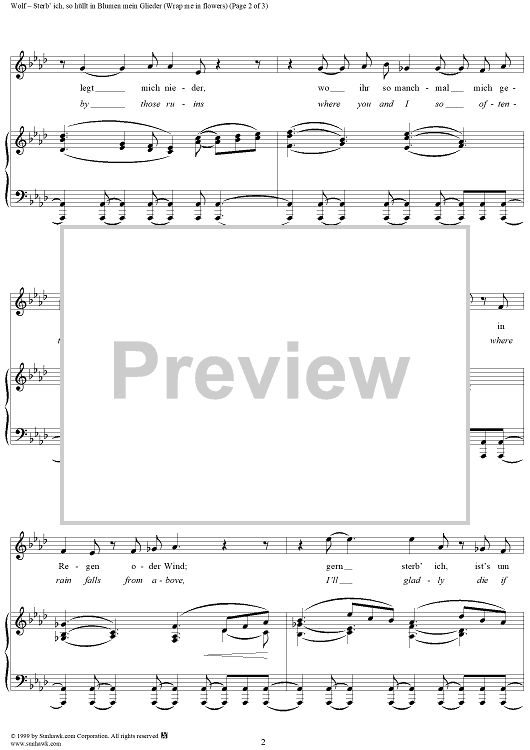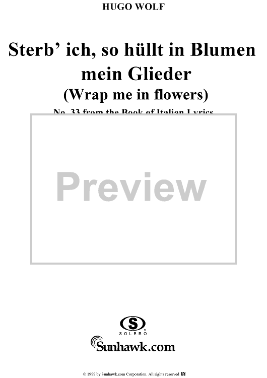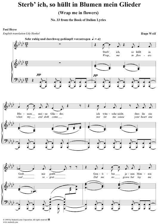 Digital Sheet Music for Italienisches Liederbuch, nach Paul Heyse, Part 2, No. 33 - Sterb' ich, so hüllt in Blumen meine Glieder by Hugo Wolf, Paul Heyse scored for Voice/Piano; id:263255
