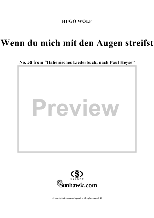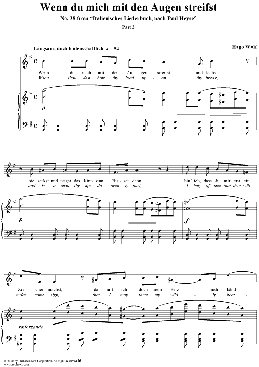 "Italienisches Liederbuch, nach Paul Heyse, Part 2, No. 38 - Wenn du mich mit den Augen streifst und lachst" Sheet Music by Hugo Wolf